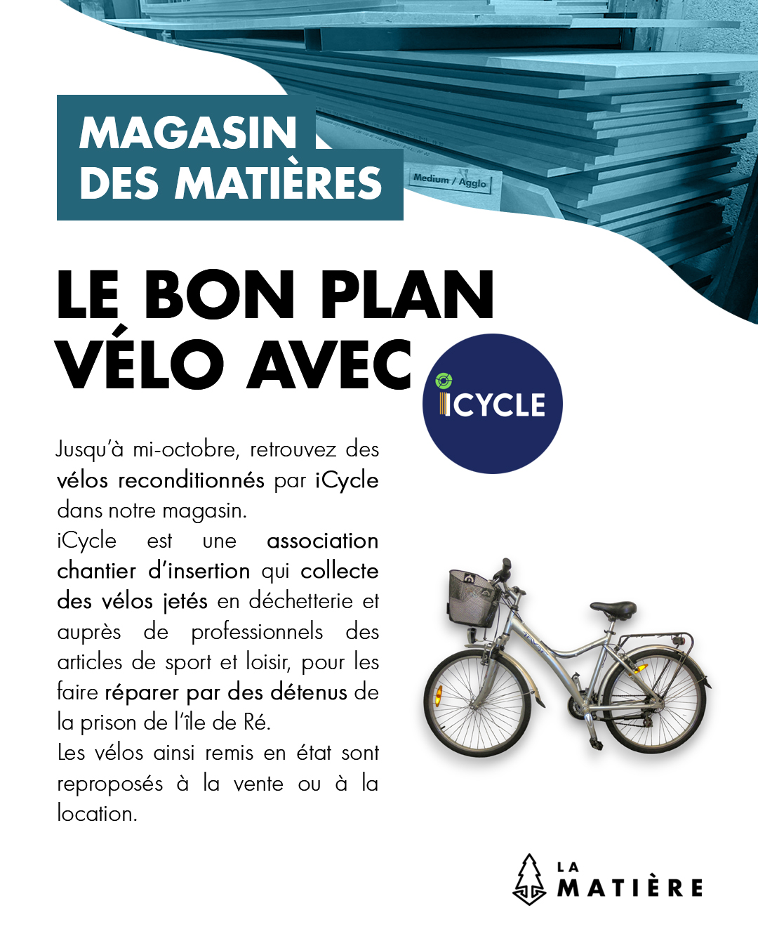 FONCTIONNEMENT : Pour accéder et bénéficier des tarifs préférentiels du magasin, dans la limite des stocks collectés et disponibles, vous devez adhérer à notre association. Acheter chez La Matière, c’est agir pour l’environnement et contribuer au développement d’un projet social et solidaire impliquant tout un écosystème de partenaires locaux.