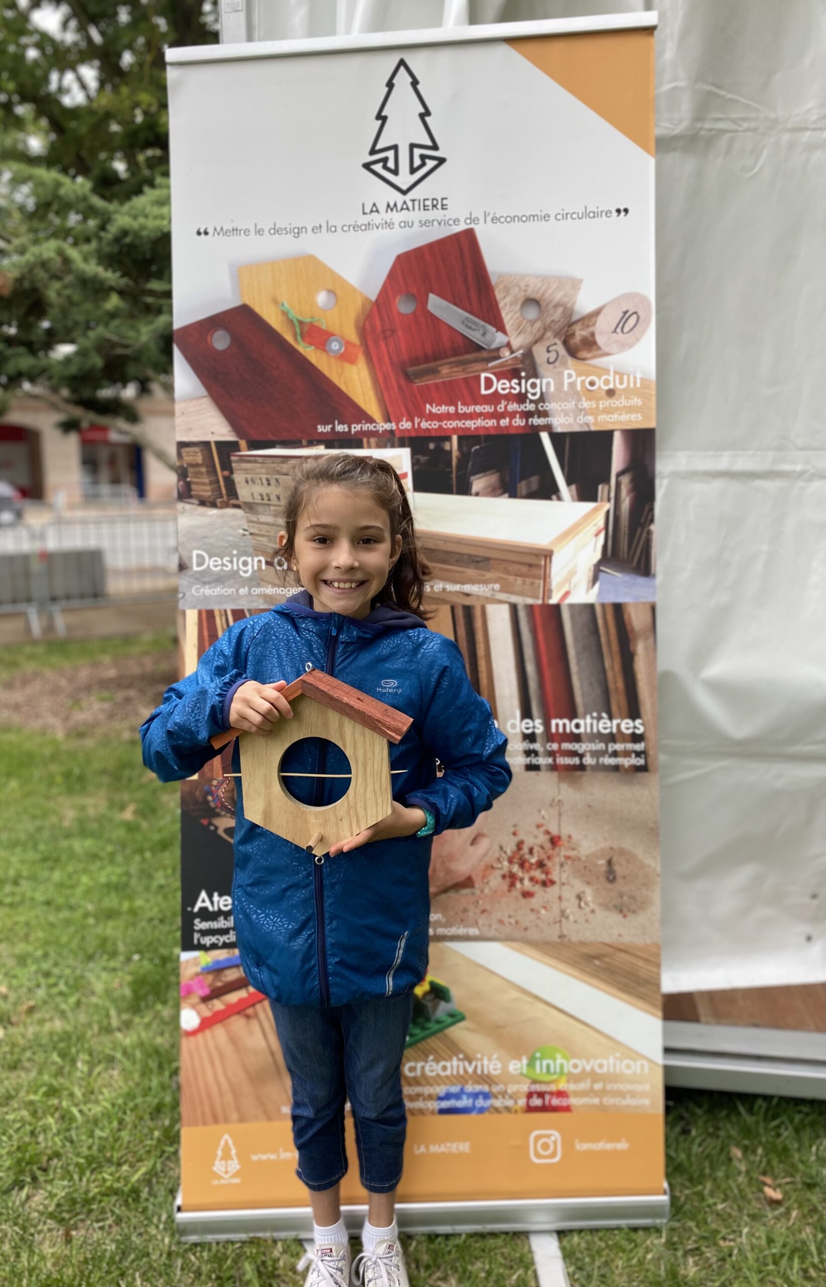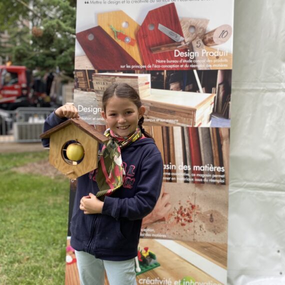 Accompagné par notre Dream Team circulaire et pédagogue, Baptiste / Steve / Benjamin, les participants ont pu fabriquer et repartir avec leur nichoir à oiseau original, réalisé à l’aide des chutes du chantier d’installation du festival !